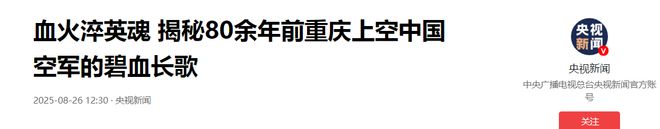 参考资料:血火淬英魂 揭秘80余年前重庆上空中国空军的碧血长歌2025-08-26 12:30·央视新闻